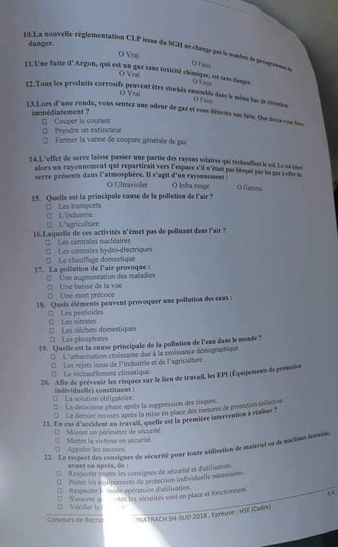 اسئلة مسابقات سوناطراك كتابي وشفوي: